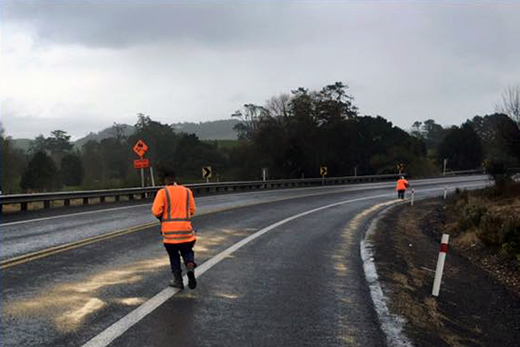 Posting to their Facebook page this morning, a Waikato District Police spokesperson says there’s large patches of oil through the gorge, mostly in the Waihi bound lane.