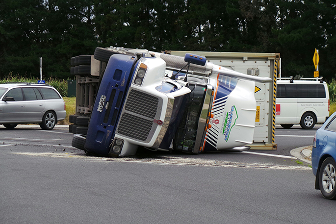 Western Bay of Plenty road policing manager Senior Sergeant Ian Campion says the truck and trailed rolled at the roundabout where State Highway 33 and State Highway 2 meet, near Paengaroa, shortly before 4pm.